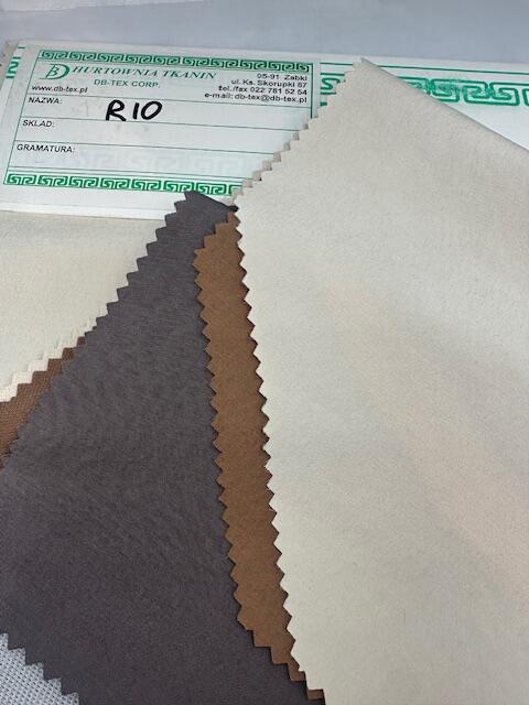 Tkanina kurtkowa Rio wykonana z trwałego poliestru. Tkanina posiada dwie warstwy, podklejana dzianiną, określana jako tkanina płaszczowo-kurtkowa. Nadaje się do szycia parek kurtek i płaszczy.